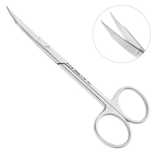 Хирургические ножницы Goldmann-Fox 19-6 с изогнутыми лезвиями применяются в стоматологии и челюстно-лицевой хирургии для рассечения мягких тканей. Они используются при сложных операциях, требующих высокой точности и контроля, обеспечивая аккуратные разрезы.