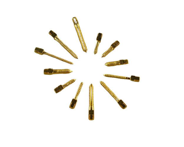 Прочный бессвинцовый сплав, из которого изготовлен анкерный штифт S5, обеспечивает прочность реставрации. Чтобы продлить срок его службы, он покрывается слоем чистого золота, конусная форма позволяет снизить давление на дентин.