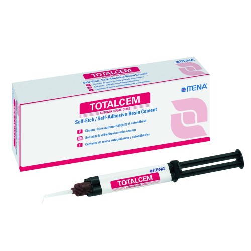 ОПИСАНИЕ: TOTALCEM АУТОМИКС ОТТЕНОК A2 8Г (5МЛ), НАСАДКИ. TotalCem - это самопротравливающий самоадгезивный композитный цемент для постоянной фиксации. Не требует предварительной протравки перед применением, а также использование грунтовки или связующего бондинга – все включено в единый шаг нанесения Totalcem! Прочность фиксации в 3 раза выше чем у стекло-иономерного цементного композита. TotalCem идеален в применении для фиксации зубных штифтов, коронок, мостов, а также пломб и виниров. Гелеобразная структура способствует легкому удалению излишков материала. Самоотверждение композита способствует его практичному применению особенно в труднодоступных для светополимеризации участках полости рта. Удобный и надежный TotalCem успешно позволяет экономить драгоценное время стоматологов по всему миру. ПОКАЗАНИЯ TOTALCEM TotalCem показан для всех субстратов (эмали, дентина, металла и композита). TOTALCEM ПОКАЗАН ДЛЯ Постоянного цементирования коронок и мостов, вкладок и накладок. Постоянного цементирования штифтовых культевых вкладок. ОСНОВНОЙ СОСТАВ TOTALCEM МАТРИЦА УДМА (уретандиметакрилат), Бис-ГМА (бисфенол А глицидил метакрилат), ТЭГДМА (триэтиленгликольдиметакрилат). КИСЛЫЙ МОНОМЕР 4-МЭТК (4-метакрилоксиэтилтримеллитовая кислота). НАПОЛНИТЕЛЬ Бариевое стекло, пирогенный диоксид кремния. 4-Метакрилоксиэтилтримеллитовая кислота (4-МЭТК) 4-МЭТК - кислый мономер, придающий материалу протравливающие свойства. Его метакрилатные группы обеспечивают кополимеризацию с метакрилатными мономерами матрицы (ТЭГДМА, Бис-ГМА, УДМА). Таким образом, 4-МЭТК способствует проникновению мономеров матрицы в твердую ткань благодаря своей аффинности к тканям зуба. Также этот адгезивный мономер обладает аффинностью к металлам. TotalCem содержит в качестве наполнителя наночастицы, обеспечивающие высокую механическую прочность и долговечность материала. ОТТЕНКИ TOTALCEM TotalCem выпускают в двух оттенках для получения лучших эстетически значимых результатов и приемлемости в каждом клиническом случае. A2 Универсальный оттенок - для фиксации большинства элементов реставрации.